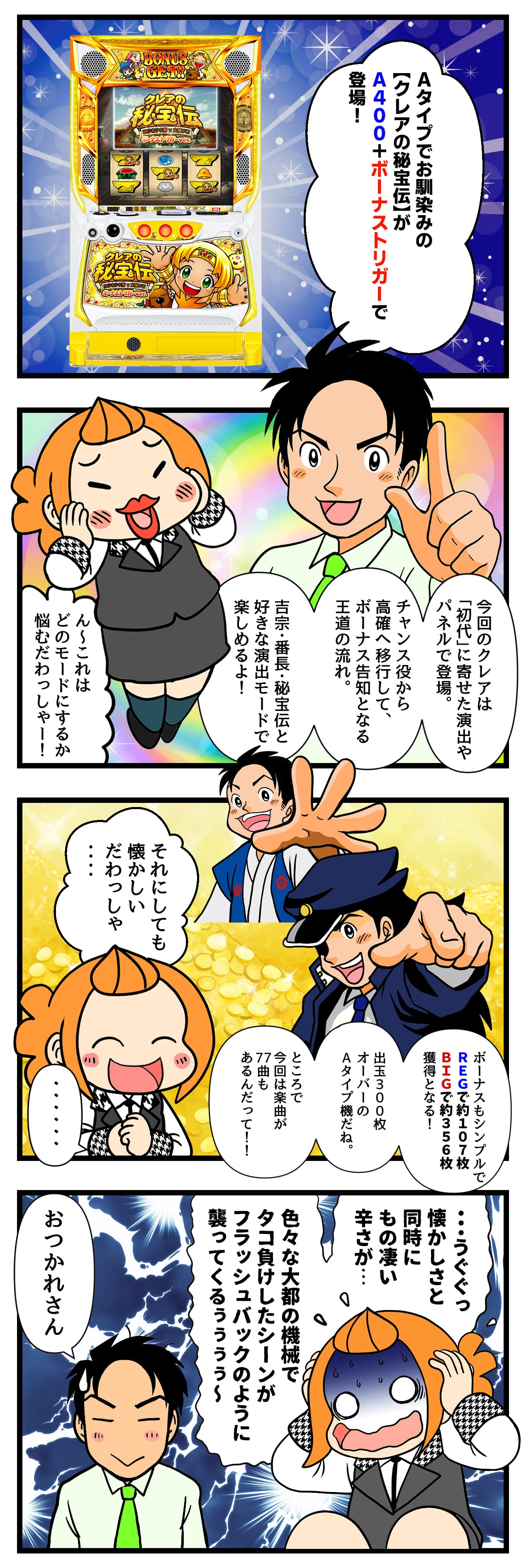 短時間勝負に向いているタイプで、夜から打たれるお客様も多いAタイプです。初代に寄せた演出で懐かしさもあり多数の楽曲でも楽しめます♪